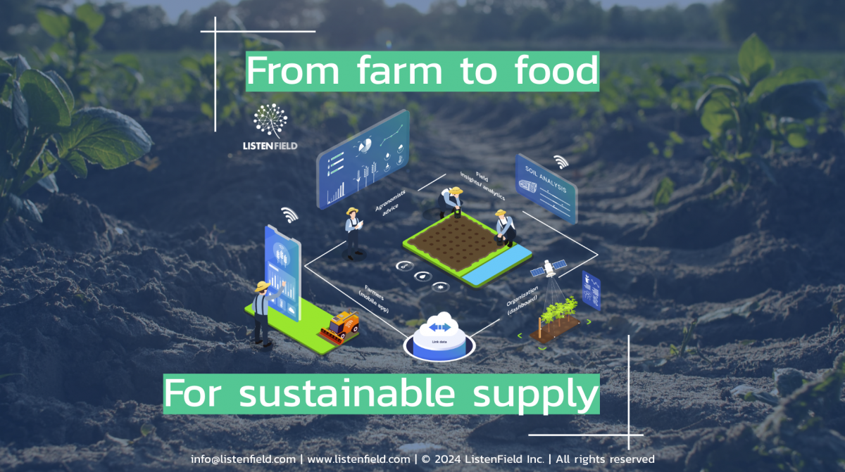 • แอปพลิเคชัน FarmAI โดย ListenField ให้ข้อมูลด้านการผลิต ตั้งแต่เรื่องดิน ธาตุอาหารในดิน การติดตามการเจริญเติบโต ไปถึงการเก็บเกี่ยว เทคนิคการเก็บเกี่ยวที่เหมาะสม การพยากรณ์อากาศเฉพาะพื้นที่ และยังมีการแบ่งปันเครื่องจักรระหว่างฟาร์มด้วย