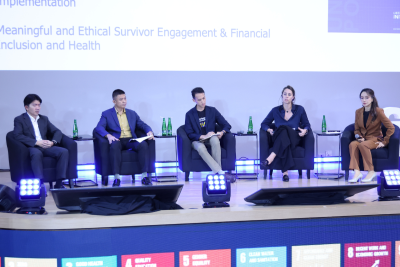 ส่วนด้านการเงินและสิทธิมนุษยชน จิล ฮินเดอร์ ตัวแทนจาก UNDP ระบุว่าองค์กรกำลังขับเคลื่อนโครงการ Finance Against Slavery and Trafficking (FAST) Initiative โดยการสนับสนุนของรัฐบาลลิกเตนสไตน์ ซึ่งเป็นโครงการที่เชื่อมโยงกลุ่มประเทศ G7 และกลุ่มประเทศ G20 เพื่อทำงานร่วมกับสถาบันการเงินในการยกระดับและป้องกันการละเมิดสิทธิมนุษยชน แลกเปลี่ยนข้อมูลกับกลุ่มธนาคารเพื่อเรียนรู้กลุ่มลูกค้าที่อาจตกเป็นเหยื่อสแกมเมอร์และการค้ามนุษย์ รวมถึงข้อเสนอแนะให้เหยื่อมีสิทธิเข้าถึงบริการทางการเงินแม้ไม่มีเอกสารครบถ้วน เป็นต้น