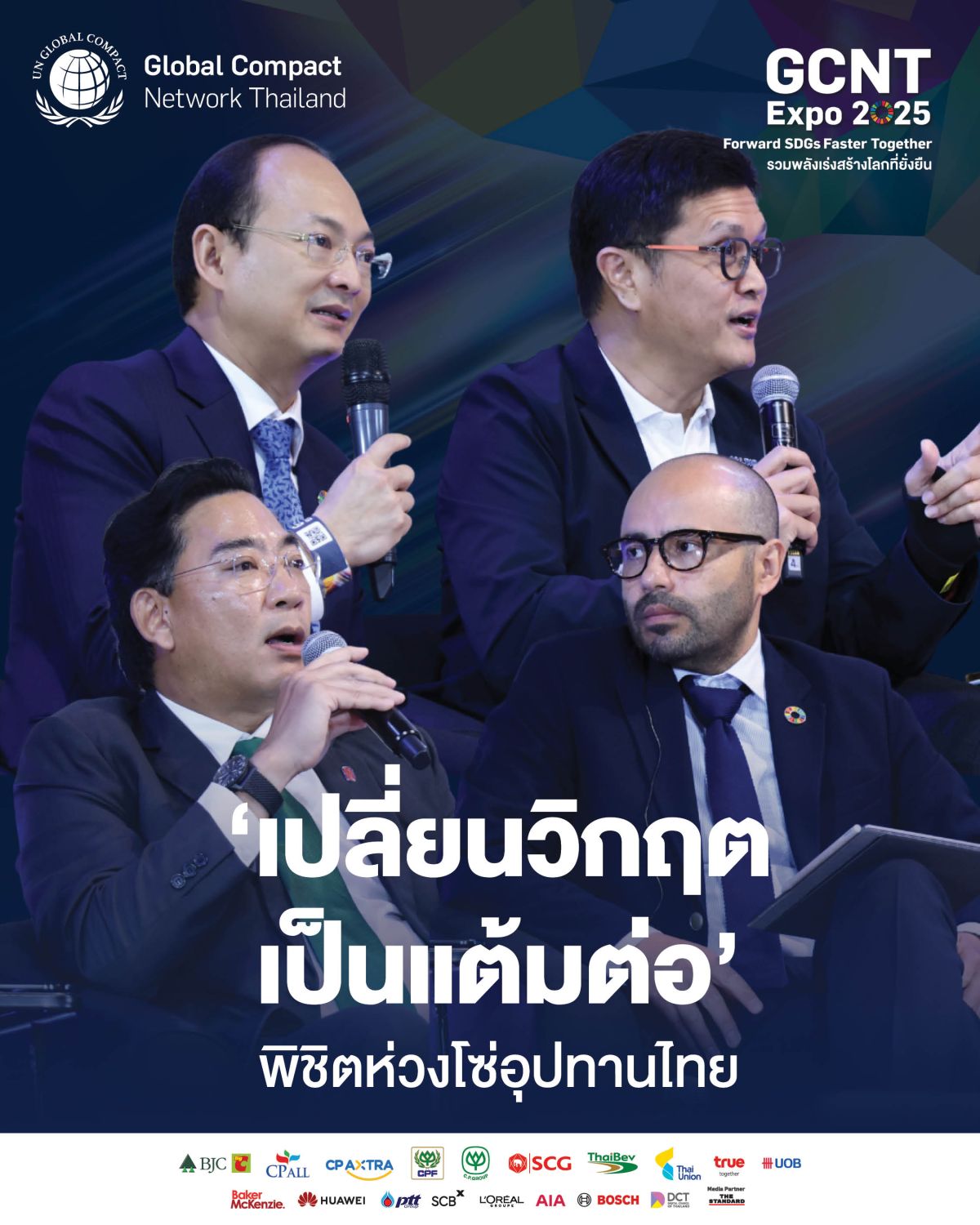 นี่คือ บทสรุปที่ทุกภาคส่วนต้องมารวมพลังในงาน GCNT EXPO 2025: Forward SDGs Faster Together รวมพลังเร่งสร้างโลกที่ยั่งยืน หัวข้อ From Risk to Resilience: Reinventing Thailand’s Supply Chain for the Future เพื่อตั้งคำถามใหม่ต่อระบบห่วงโซ่อุปทานไทย พร้อมออกแบบแนวทางที่ไม่เพียงรับมือความเสี่ยง แต่ต้องเปลี่ยนวิกฤตให้เป็นแต้มต่อการแข่งขัน