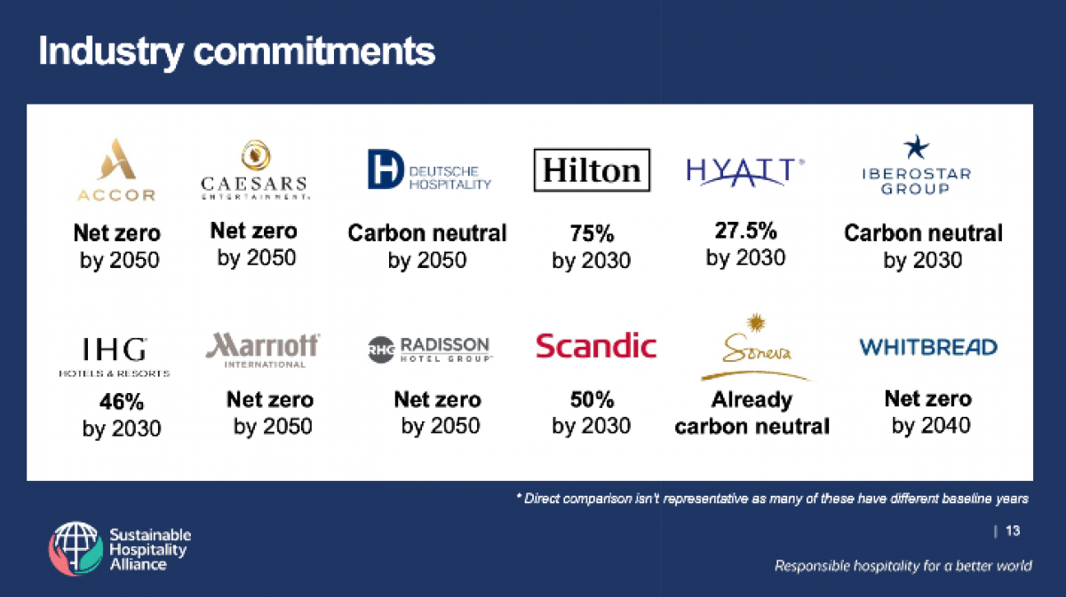 ตั้งแต่ขั้นตอนการวัดระดับการปล่อยคาร์บอน การนำเทคโนโลยีนวัตกรรมต่างๆ มาใช้ลดการปล่อยคาร์บอนและอนุรักษ์สิ่งแวดล้อม การร่วมมือกับผู้มีส่วนได้ส่วนเสียรวมถึงซัพพลายเออร์ตลอดห่วงโซ่ และสุดท้ายคือการสร้างมุมมองที่กว้างขึ้นในการทำธุรกิจ โฟกัสภาคส่วนอื่นๆ ของอุตสาหกรรมด้วยนอกเหนือจากแค่ดำเนินกิจการโรงแรมของตนเอง เพื่อร่วมกันลดผลกระทบด้านลบ และสร้างผลกระทบด้านบวกแทน