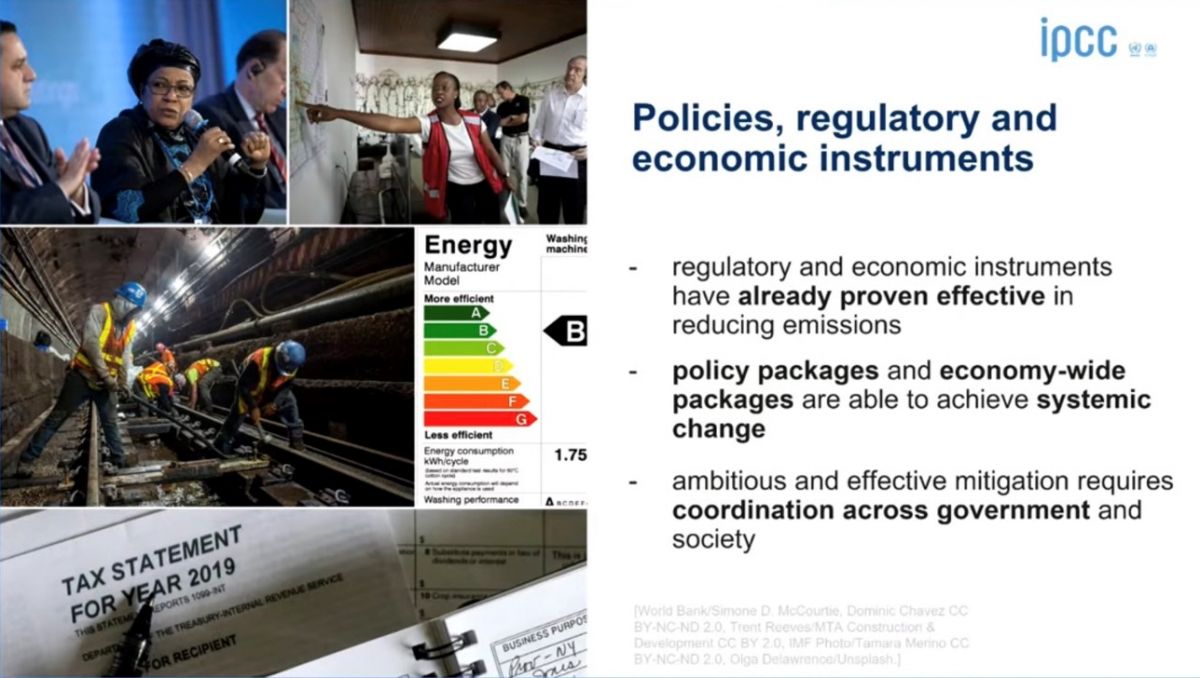 Regulatory and economic instruments ranging from standards for vehicle efficiency and building codes to policies for industrial decarbonisation. Broad based carbon taxes and emission trading systems have already proved effective in reducing emissions. Source, such measures can be strengthened and expanded significantly.