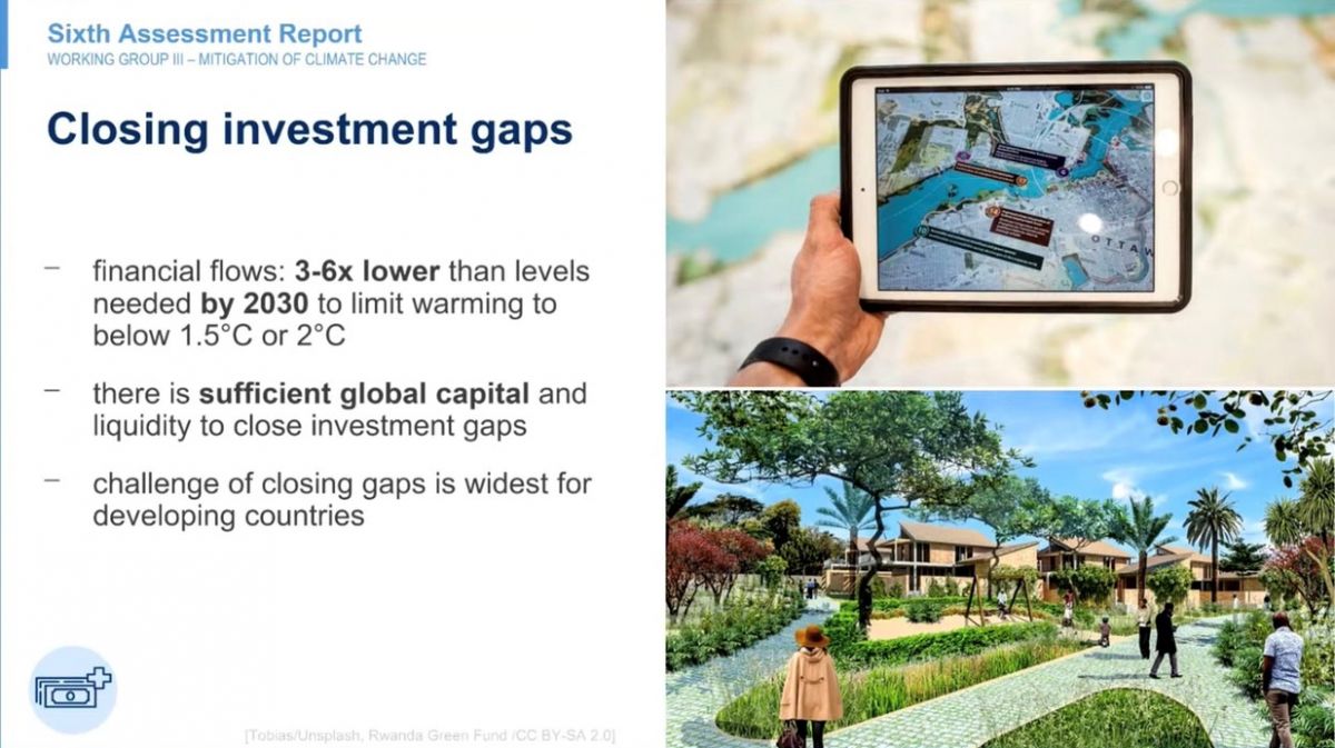 Financial flows are a factor of 3 – 6 times lower than levels needed by 2030, to limit warming to below 1.5 degrees Celsius, or 2 degrees Celsius. But there is sufficient global capital available in liquidity to close investment gaps. Clear signaling from the government and the international community, including a strong alignment of public sector finance and policies, is critical.