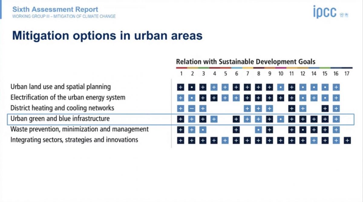 As we focus on just one option, green and blue infrastructure. We see that green roof and facade energy of parks and open space with lands and urban agriculture can only count. Not only absorb and store carbon, but at the same time achieve many other sustainable development goals.
