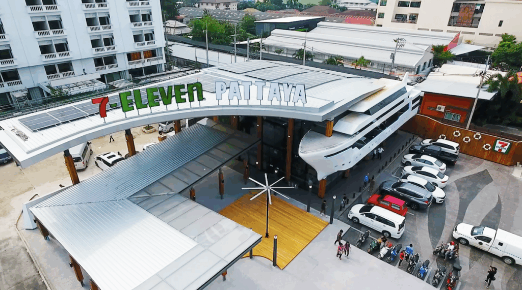 โดยตลอดปี 2565 ซีพี ออลล์ ได้พัฒนานวัตกรรมประหยัดพลังงานภายในร้านเซเว่น อีเลฟเว่น ภายใต้นโยบาย 7 โก กรีน (7 Go Green) ส่งผลให้ร้านเซเว่น อีเลฟเว่นใช้พลังงานไฟฟ้าลดลงรวมกว่า 54 ล้านกิโลวัตต์-ชั่วโมง (kWh) และลดการปล่อยก๊าซเรือนกระจกได้รวมกว่า 23,328 ตันคาร์บอนไดออกไซด์เทียบเท่า (tCO2e) หรือเปรียบเทียบการปลูกไม้ยืนต้นจำนวน 542,511 ต้น โดยปัจจัยหลักในการออกแบบร้านเพื่อสิ่งแวดล้อม ประกอบด้วย