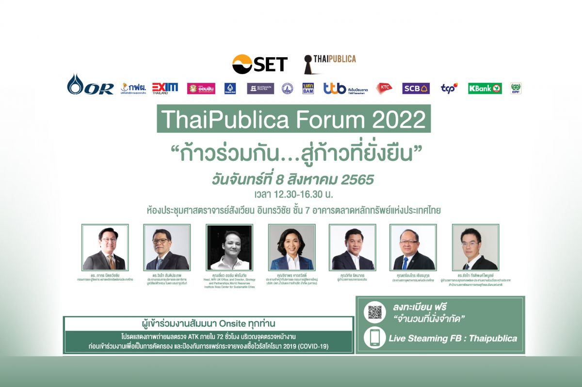 ThaiPublica Forum 2022 “ก้าวร่วมกัน…สู่ก้าวที่ยั่งยืน”วันจันทร์ที่ 8 สิงหาคม 2565 เวลา 13.00-16.30 น. ณ หอประชุมศาสตราจารย์สังเวียน อินทรวิชัย ชั้น 7 อาคารตลาดหลักทรัพย์แห่งประเทศไทย