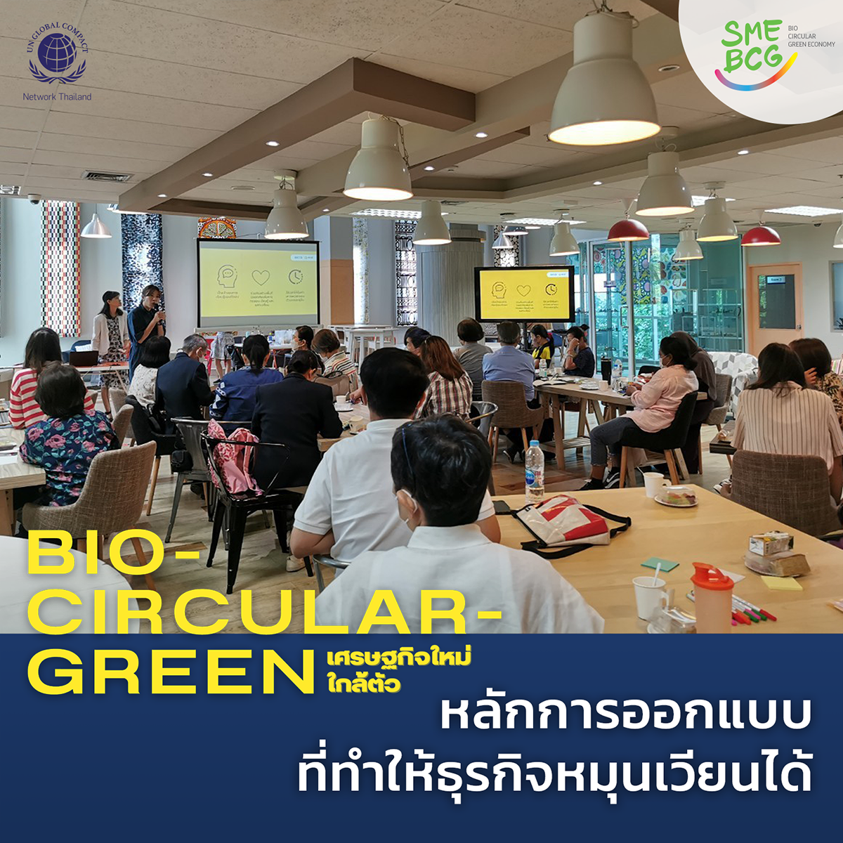 หนึ่งในการรวมพลังของภาคธุรกิจที่ใหญ่ที่สุดในโลก คือการร่วมเป็นสมาชิก UN Global Compact หรือ สมาคมเครือข่ายของผู้ประกอบการนักธุรกิจจากทั่วโลก สู่การบรรลุเป้าหมายเพื่อการพัฒนาที่ยั่งยืนของสหประชาชาติ (UN SDGs) จากการผลักดันเพื่อความยั่งยืนจากทั่วโลกได้นำไปสู่แนวทาง Bio-Circular-Green Economy (BCG Economy) และการนำหลักการ Circular Design มาใช้ รวมถึงการตอบรับกระแสโลกทางนโยบายของรัฐบาลไทยที่ให้ความสําคัญกับเรื่อง สิ่งแวดล้อม การลดก๊าซเรือนกระจก ในการส่งเสริมธุรกิจ SMEs ด้วยเศรษฐกิจ BCG คือ