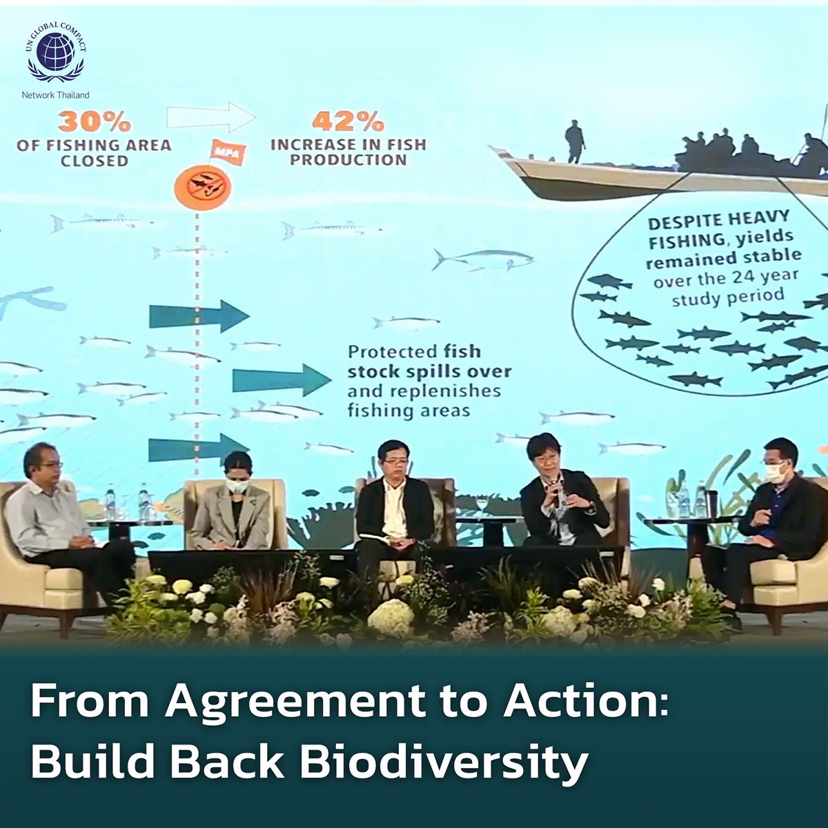 ภายในงาน “From Agreement to Action: Build Back Biodiversity” กิจกรรมวันสากลแห่งความหลากหลายทางชีวภาพ (International Day for Biological Diversity) ได้มีการแลกเปลี่ยนทัศนะและพูดคุยกัน ภายใต้หัวข้อ “OECMs โอกาสในการบรรลุเป้าหมาย 30 x 30 ของประเทศไทย” ระหว่าง 4 มุมมองจากตัวแทนหน่วยงาน เพื่อการพัฒนา OECMS ไปสู่เป้าหมาย