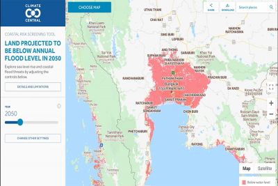 Climate Central จัดให้กรุงเทพมหานครเป็นหนึ่งในพื้นที่ที่มีความเสี่ยงสูงจากน้ำท่วมพื้นที่ตามแนวชายฝั่งและการทรุดตัวของดิน
