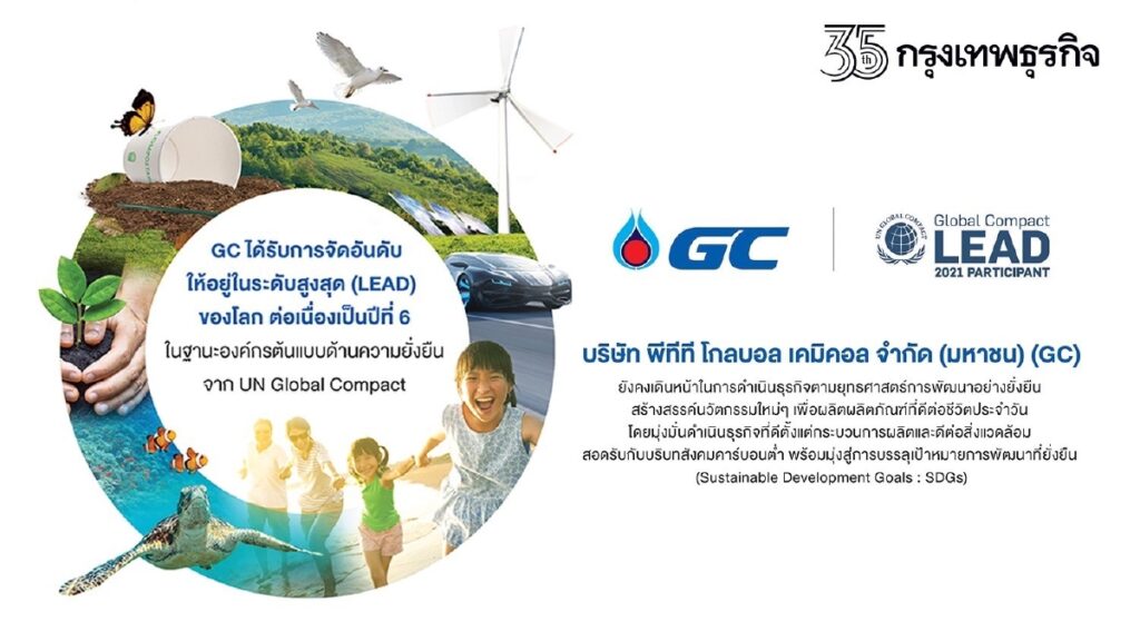 ดร.คงกระพัน อินทรแจ้ง ประธานเจ้าหน้าที่บริหาร บริษัท พีทีที โกลบอล เคมิคอล จำกัด (มหาชน) หรือ GC กล่าวว่า “GC มีความเชื่อและความมุ่งมั่นในการขับเคลื่อนธุรกิจให้สอดคล้องกับเป้าหมายการพัฒนาที่ยั่งยืนของสหประชาชาติ (Sustainable Development Goals; SDGs) ด้วยการสร้างสมดุลระหว่างเศรษฐกิจ สังคม และสิ่งแวดล้อม (2E1S)  เพื่อให้ GC เป็นองค์กรต้นแบบด้านความยั่งยืน วันนี้ GC มีความภาคภูมิใจที่ได้รับการจัดอันดับ ในฐานะองค์กรต้นแบบด้านความยั่งยืนให้อยู่ในระดับสูงสุด (LEAD) ของโลก ต่อเนื่องเป็นปีที่ 6 จากกรอบความร่วมมือการพัฒนาเพื่อความยั่งยืนแห่งสหประชาชาติ (United Nations Global Compact หรือ UN Global Compact) ในปีนี้ GC ดำเนินการเชิงรุกเพื่อขานรับการแก้ปัญหาภาวะโลกร้อนสภาพภูมิอากาศทวีความรุนแรง โดยการสร้างสมดุลระหว่างการเติบโตทางธุรกิจและความยั่งยืน