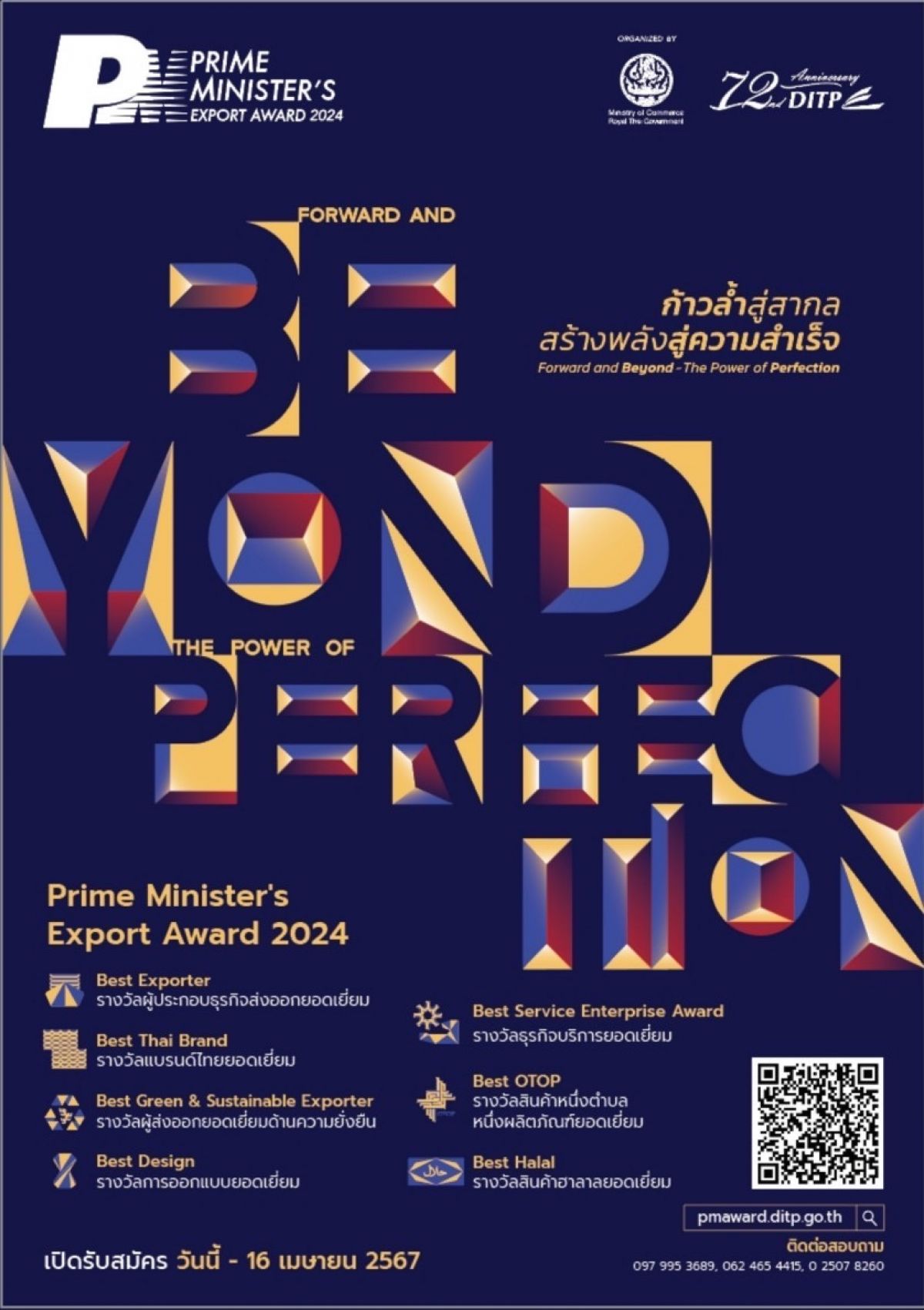 เชิญชวนผู้ประกอบการสมัครเข้ารับรางวัลผู้ประกอบธุรกิจส่งออกดีเด่น ปี 2567 (Prime Minister’s Export Award 2024)