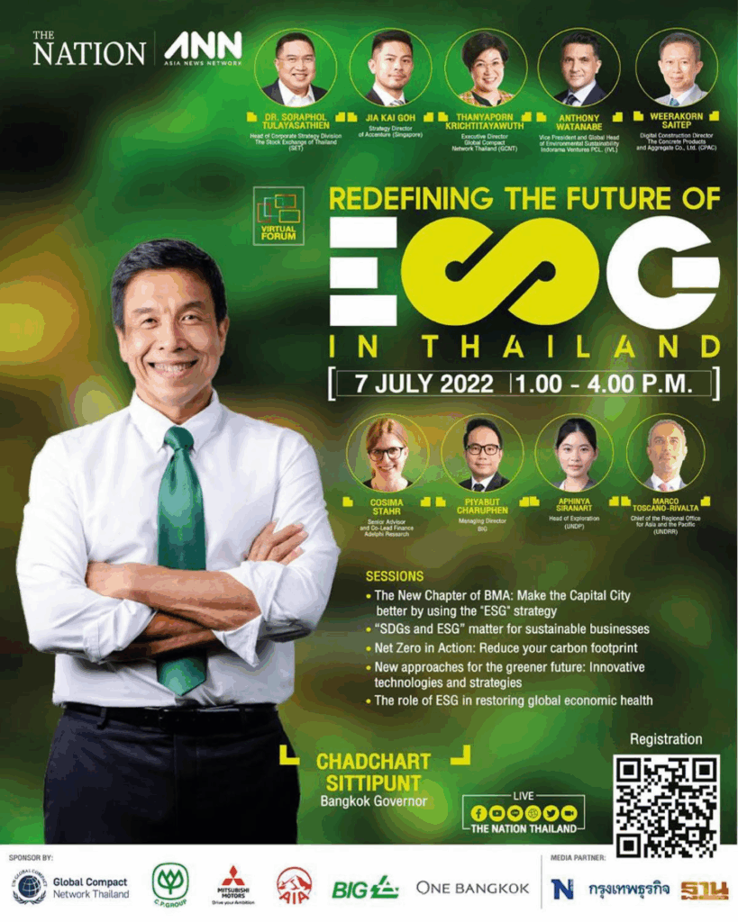 โอกาสนี้ได้รับเกียรติจาก คุณชัชชาติ สิทธิพันธุ์ ผู้ว่าฯ กทม. ในการแสดงวิสัยทัศน์พิเศษ “นำแนวคิด “ESG” สู่การพลิกโฉมกรุงเทพมหานคร” พร้อมด้วยวิทยากรผู้บริหารจากองค์กรชั้นแนวหน้าที่จะมาร่วมแสดงคิดเห็น และแบ่งปันองค์ความรู้การนำแนวคิด ESG มาปรับใช้และสร้างโอกาสทางธุรกิจ