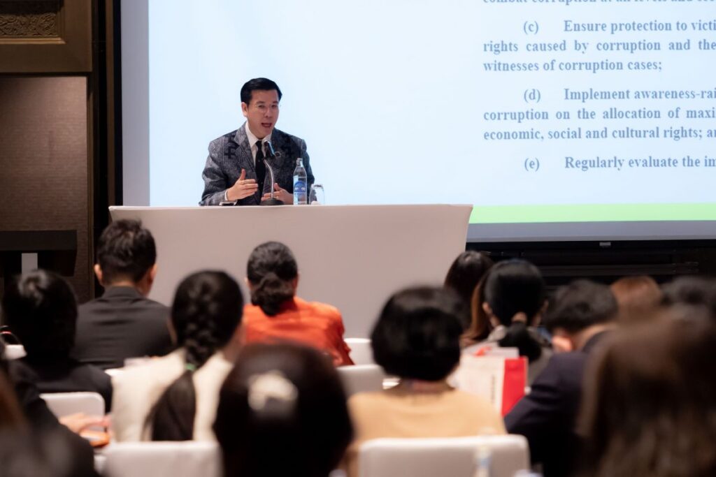 ขณะที่ ดร. เนติธร ประดิษฐ์สาร เลขาธิการและกรรมการบริหาร UNGCNT กล่าวย้ำว่าความเสี่ยงเกี่ยวกับการกระทำทุจริตกับการละเมิดสิทธิมนุษยชน  จะเป็นอุปสรรคต่อการยกระดับห่วงโซ่อุปทานที่ยั่งยืนและรับผิดชอบของธุรกิจทั่วโลก รวมถึงประเทศไทย  หากเราไม่สามารถจัดการได้ จะเป็นอุปสรรคที่สำคัญต่อการพัฒนาเศรษฐกิจและสังคม และเป็นอุปสรรคต่อการบรรลุเป้าหมายการพัฒนาที่ยั่งยืน 2030  ดร. เนติธร ยังได้เสนอ 4 มาตรการการจัดการความเสี่ยงด้านการทุจริตและการละเมิดสิทธิมนุษยชนในกระบวนการจัดหางานและการจ้างงานแรงงานข้ามชาติ ซึ่งเป็นประเด็นเร่งด่วน ได้แก่ มาตรการด้านนโยบาย โดยเฉพาะ ในกระบวนการจัดหางาน การขอใบอนุญาตทำงาน การขอ VISA  โดยออกแบบมาตรการเหล่านี้ให้สะดวก ปลอดภัย และประหยัดต้นทุนและเวลาต่อทั้งแรงงานและภาคธุรกิจ การส่งเสริมหลักการ การจัดหางานอย่างมีจรรยาบรรณ (Ethical Recruitment) ให้นำไปใช้ในกลุ่มบริษัทจัดหางาน ทั้งในและนอกประเทศโดยต้องมีกลไกการตรวจสอบ และการรับเรื่องร้องทุกข์ที่โปร่งใสเข้าถึงได้ การใช้เทคโนโลยี รวมถึง AI หรือ Blockchain เพื่อลดช่องว่างและความเปราะบางในการแสวงหาประโยชน์จากผู้ที่เกี่ยวข้อง เช่น การใช้เทคโนโลยีในการแจ้งรายงานตัว 90 วัน รวมทั้งการนำเทคโนโลยีมาใช้ในกระบวนการตรวจสอบย้อนกลับ รวมถึง การตรวจสอบสถานะสิทธิมนุษยชนรอบด้าน การรายงานผลการดำเนินงาน เพื่อให้ธุรกิจทุกขนาดสามารถเปิดเผยผลการดำเนินการตามหลักการชี้แนะสหประชาชาติว่าด้วยธุรกิจกับสิทธิมนุษยชนได้อย่างสะดวก และประหยัดงบประมาณ
