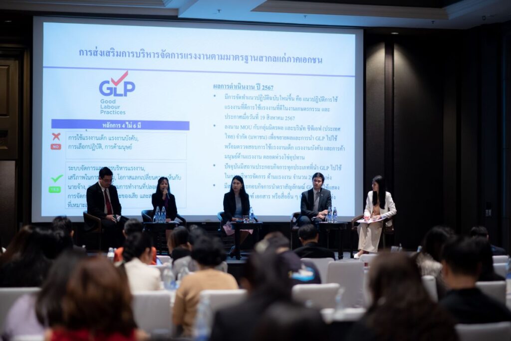 คุณแก้วใจ สัจจะเวทะ ผู้อำนวยการสำนักประสานความร่วมมือระหว่างประเทศ กระทรวงแรงงาน คุณปิยนุช จันทนสุคนธ์ นักวิชาการยุติธรรมชำนาญการ รักษาการในตำแหน่ง ผู้อำนวยการกลุ่มงานวิชาการและนวัตกรรมด้านการป้องกัน สำนักงานคณะกรรมการป้องกันและปราบปรามการทุจริตในภาครัฐ (ป.ป.ท.) คุณณพวุฒิ ประวัติ ผู้ประสานงานโครงการห่วงโซ่อุปทานที่ยืดหยุ่น ครอบคลุม และยั่งยืน (RISSC) ในประเทศไทย องค์การแรงงานระหว่างประเทศ (ILO) คุณนิธิพัศ นันทวโรภาส ผู้จัดการฝ่าย สำนักความร่วมมือระหว่างประเทศด้านความยั่งยืนและสื่อสารองค์กร เครือเจริญโภคภัณฑ์ วงเสวนานี้ ชี้ให้เห็นความสำคัญของการร่วมมือกัน ระหว่างภาครัฐ ภาคเอกชน และองค์กรต่างๆ ในการสร้างห่วงโซ่อุปทานที่โปร่งใสและเป็นธรรม โดยมีข้อเสนอแนะสำคัญ คือ การปรับปรุงกฎหมายแรงงานให้ทันสมัย การสร้างมาตรฐานร่วมกัน และการส่งเสริมการตรวจสอบอย่างสม่ำเสมอ เพื่อให้ประเทศไทยมีความสามารถในการแข่งขันในตลาดโลก และสร้างสภาพแวดล้อมการทำงานที่ดีขึ้นสำหรับแรงงานทุกคน