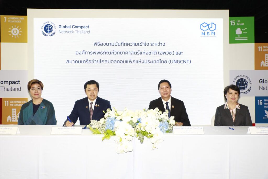 สมาคมเครือข่ายโกลบอลคอมแพ็กแห่งประเทศไทย (UNGCNT : UN Global Compact Network Thailand) ได้ลงนามบันทึกข้อตกลงความร่วมมือกับ องค์การพิพิธภัณฑ์วิทยาศาสตร์แห่งชาติ (อพวช.) หรือ NSM ในระยะเวลา 3 ปี นับจากนี้  โดยมีวัตถุประสงค์ (1)เพื่อส่งเสริมความตระหนักรู้และความเข้าใจด้านวิทยาศาสตร์และเทคโนโลยีและการพัฒนาที่ยั่งยืนของประชาชน (2)เพื่อจัดให้มีโครงการแลกเปลี่ยนและบุคลากรของฝ่ายบริหาร เจ้าหน้าที่ นักสื่อสารวิทยาศาสตร์และนักวิจัยที่เกี่ยวข้องในการกำกับและจัดการกิจกรรมทางวิทยาศาสตร์ที่เกี่ยวข้อง (3)เพื่อแลกเปลี่ยนข้อมูล ประสบการณ์และแนวปฏิบัติด้านเทคโนโลยีและเทคนิคด้านวิทยาศาสตร์และการพัฒนาที่ยั่งยืน (4)เพื่อส่งเสริมการวางแผนร่วมกัน โครงการวิจัย การสัมมนา สัมมนาและกิจกรรมพิเศษ (5)เพื่อแลกเปลี่ยนข้อมูลและเอกสารสำคัญเพื่อการเผยแพร่วัฒนธรรมทางวิทยาศาสตร์และการเผยแพร่วิทยาศาสตร์ (6)เพื่อแลกเปลี่ยนความร่วมมือในกิจกรรมอื่นๆ ที่เกี่ยวข้อง โดยจะพิจารณาหารือกันในอนาคต