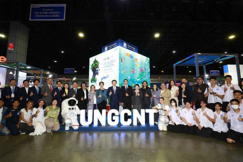 ในปีนี้ UNGCNT ได้ร่วมกับ 27 องค์กรสมาชิก และ 8 หน่วยงานสหประชาชาติ จัดนิทรรศการ “THE GLOBE VENGERs” #ฮีโร่พิทักษ์ความยั่งยืน พื้นที่ 1,000 ตารางเมตร ในงานมหกรรมวิทยาศาสตร์และเทคโนโลยีแห่งชาติ ประจำปี 2567 โดยยกขบวนนวัตกรรมเปลี่ยนโลกจากองค์กรสมาชิกที่ตอบโจทย์ SDGs ให้บรรลุเป้าหมายปี 2030 ตามประกาศสหประชาชาติ  มาจุดประกายและสร้างแรงบันดาลใจให้กับคนรุ่นใหม่อาทิ Floating Solar” เทคโนโลยีทุ่นโซล่าร์ลอยน้ำ เพิ่มพื้นที่ผลิตพลังงานสะอาด จาก IRPC “กระบวนการผลิตอาหารจากพืช” ให้มีรสสัมผัสไม่ต่างจากอาหารจากเนื้อสัตว์ เพื่อช่วยลดการปล่อยก๊าซเรือนกระจก โดย NRF “Agri Tech” โดรนอากาศยานไร้คนขับ Health Tech Magic Mirror” กระจกสุดล้ำวิเคราะห์สุขภาพ ผ่านทางใบหน้า ด้วยนวัตกรรม AI Computer Vision จาก C.P. GROUP “BEAUTY TECH for The Future” ฟิลเตอร์แอปพลิเคชัน แสดงอันตรายจากแสงแดดต่อผิวหนัง โดย ลอรีอัล ประเทศไทย  “ไก่อวกาศ” อาหารปลอดภัย มาตรฐาน Space safety ที่ได้จากการใช้เทคโนโลยีและนวัตกรรมในกระบวนการผลิต  “ฟ.ฟาร์ม” แอปพลิเคชัน ครบวงจร เพื่อยกระดับชีวิตเกษตรไทย จาก CPF “Zeroing in on climate”  อินเตอร์แอคทีฟเกม ที่ทำให้รู้จักก๊าซเรือนกระจก และแนวทางกู้โลกจากวิกฤต climate change โดย SCBx  “โมเดลจำลองร้าน 7-Eleven ประหยัดพลังงาน” และ “รถไฟฟ้า NEOLIX & รถมอเตอร์ไซด์ไฟฟ้า  EV Bike” การพัฒนาระบบขนส่งไร้คนขับ จาก CP ALL “ห้องดิจิตอล อิมเมอร์ซีฟ Save The Sea” สัมผัสประสบการณ์การกู้โลกใต้ทะเล ในยุคทะเลเดือด เพื่อฟื้นคืนบ้านที่น่าอยู่ให้โลก โดยเซ็นทรัลพัฒนา “Refill Station” สถานีลดใช้พลาสติกเพื่อสังคมที่น่าอยู่ และ Innovation Products for Sustainability” นวัตกรรมสินค้าที่ดีต่อสุขภาพและสิ่งแวดล้อม จาก CP AXTRA  “นวัตกรรมป้องกันยุง” และ กิจกรรมด้านความยั่งยืนของคาโอ (KAO)  เทคโนโลยีที่มองไม่เห็น แต่สัมผัสได้  ผ่านแว่น VR และหุ่นยนต์ Humaniod ที่ทำให้วิถีชีวิตง่ายขึ้นและอัจฉริยะขึ้น จาก TRUE เป็นต้น