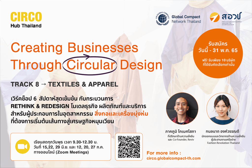เปิดรับสมัครผู้ประกอบการธุรกิจเข้าร่วมเรียนรู้ในหลักสูตร CIRCO: Creating Business Through Circular Design รุ่นที่ 8 ในเส้นทางธุรกิจ “สิ่งทอและเครื่องนุ่งห่ม (Textiles & Apparel)”