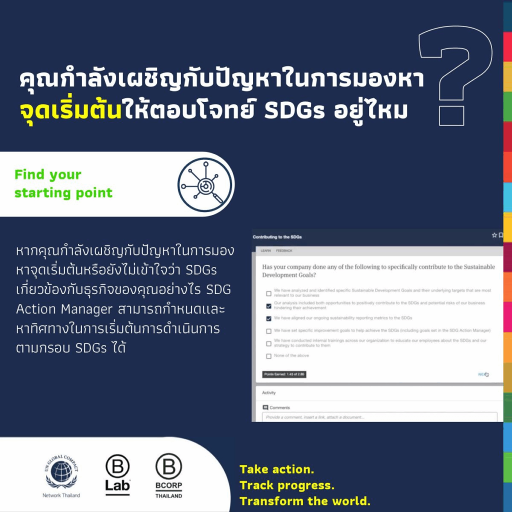 1. Find your starting point : สามารถกำหนดทิศทางในการเริ่มต้นการดำเนินการตามกรอบ SDGs ได้
