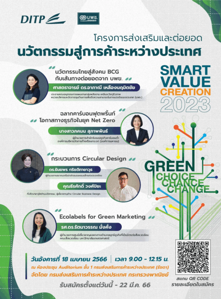 ปรับปรุง พัฒนา ต่อยอด BCG ไปสู่สิ่งที่ดีกว่า ในโครงการส่งเสริมและต่อยอด ‘นวัตกรรมสู่การค้าระหว่างประเทศ’ SMART VALUE CREATION 2023