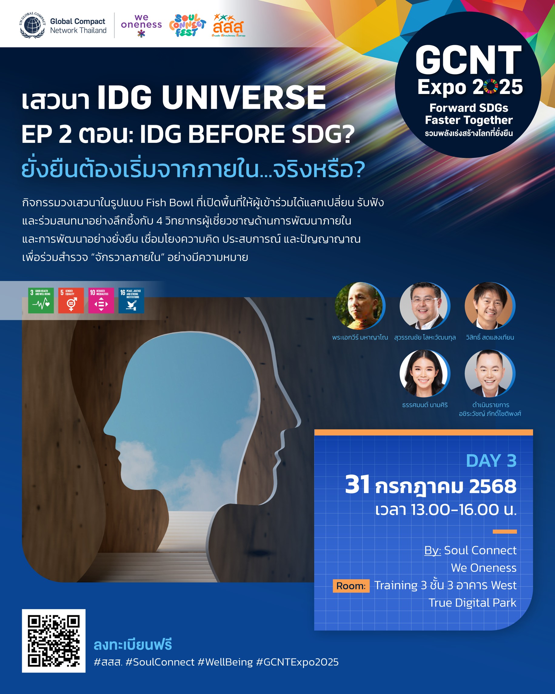 กิจกรรมวงเสวนาในรูปแบบ Fish Bowl ที่เปิดพื้นที่ให้ผู้เข้าร่วมได้แลกเปลี่ยน รับฟัง และร่วมสนทนาอย่างลึกซึ้งกับ 3 วิทยากรผู้เชี่ยวชาญด้านการพัฒนาภายในและการพัฒนาอย่างยั่งยืน เชื่อมโยงความคิด ประสบการณ์ และปัญญาญาณ เพื่อร่วมสำรวจ “จักรวาลภายใน” อย่างมีความหมาย