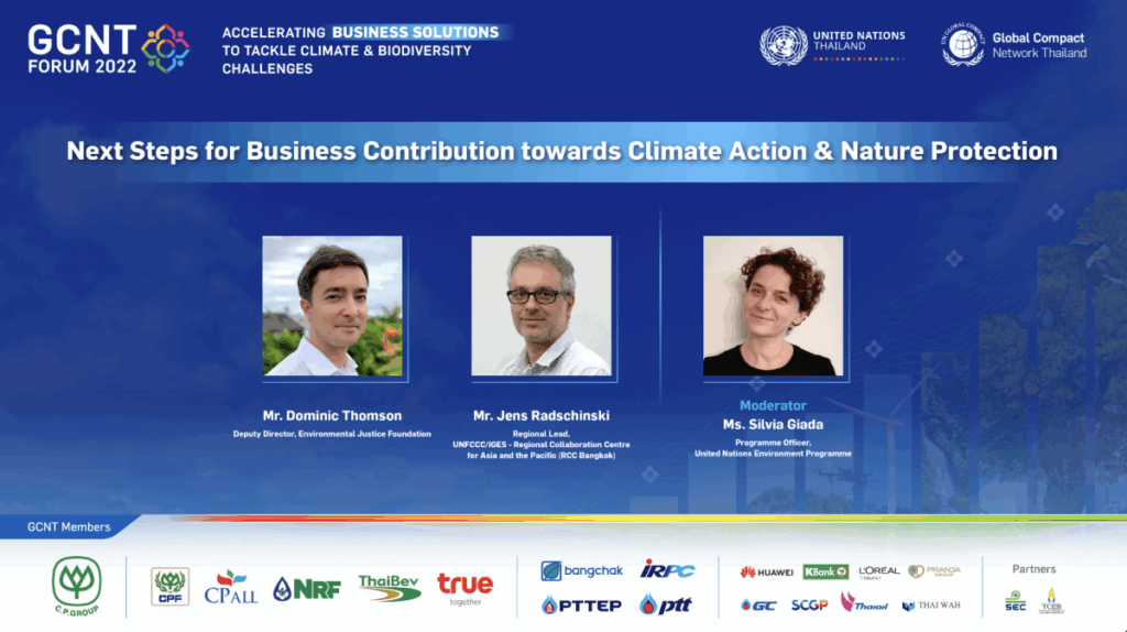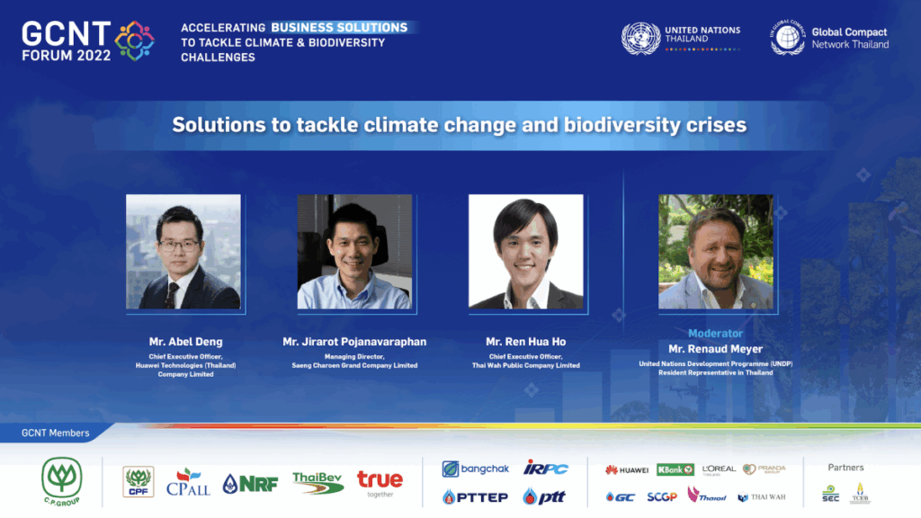 สมาคมเครือข่ายโกลบอลคอมแพ็กแห่งประเทศไทย ร่วมกับสหประชาชาติในประเทศไทย จัดงาน “GCNT Forum 2022 : Accelerating Business Solutions to Tackle Climate & Biodiversity Challenges”