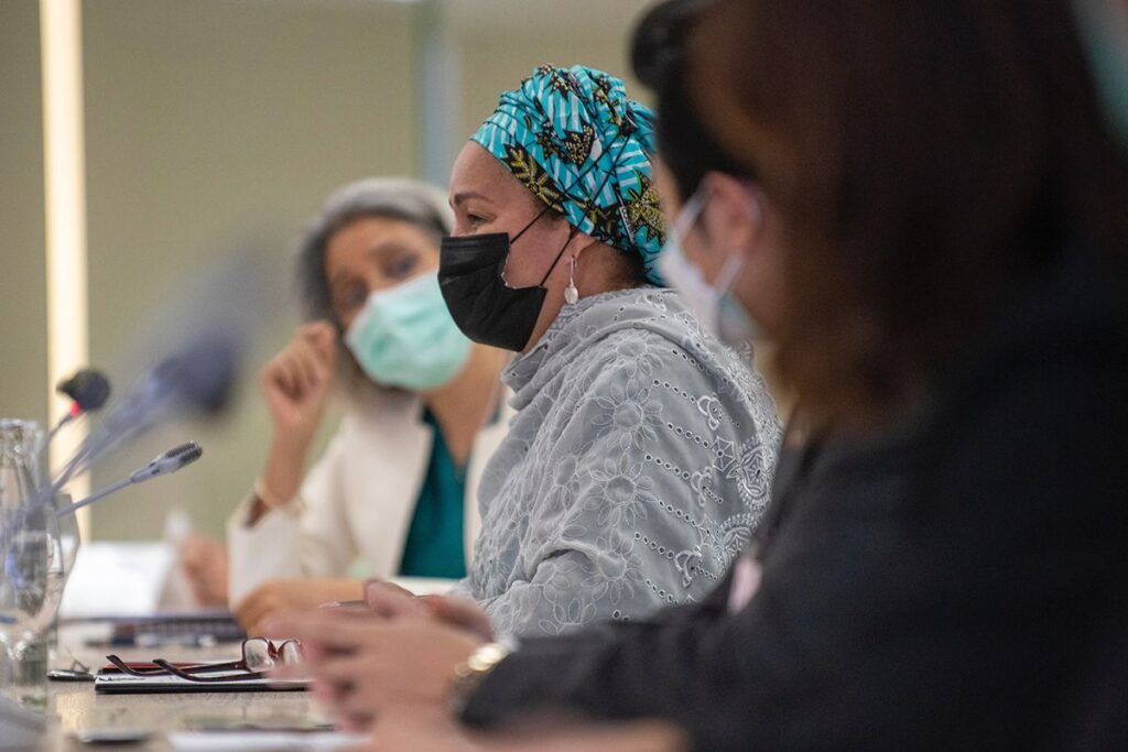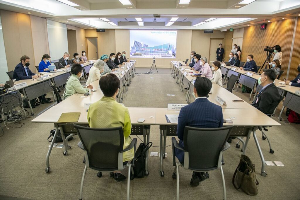 กรุงเทพฯ 29 มีนาคม 2565 ณ สำนักงานสหประชาชาติ กรุงเทพมหานคร นางอามีนา เจ โมฮัมเหม็ด (Ms. Amina J. Mohammed) รองเลขาธิการสหประชาชาติ เปิดประชุมหารือภาคธุรกิจไทยร่วมกับตัวแทนจากหน่วยงานต่างๆ ของสหประชาชาติ โดยมีผู้เข้าร่วมได้แก่ นายศุภชัย เจียรวนนท์ นายกสมาคมเครือข่ายโกลบอลคอมแพ็กแห่งประเทศไทย นางสาวรื่นวดี สุวรรณมงคล สำนักงานคณะกรรมการกำกับหลักทรัพย์และตลาดหลักทรัพย์, ดร.ศรีกัญญา ยาทิพย์ กองทุนบำเหน็จบำนาญข้าราชการ, ดร.วันดี กุญชรยาคง จุลเจริญ บริษัท เอสพีซีจี จำกัด (มหาชน), นายจำรัส สว่างสมุทร สภาอุตสาหกรรมแห่งประเทศไทย และ นางสาวกรรณิกา ว่องกุศลกิจ กลุ่มมิตรผล