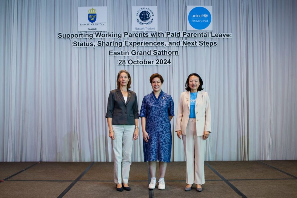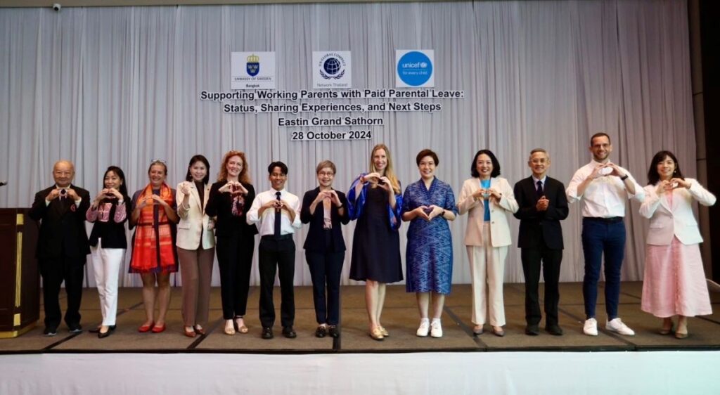 กรุงเทพฯ, 28 ตุลาคม 2567 – ยูนิเซฟร่วมกับสถานเอกอัครราชทูตสวีเดน และสมาคมเครือข่ายโกลบอลคอมแพ็กแห่งประเทศไทย จัดประชุมเสริมสร้างความเป็นผู้นำทางความคิดในหัวข้อ “การสนับสนุนพ่อแม่มือใหม่ด้วยวันหยุดเลี้ยงดูบุตร: สถานการณ์ปัจจุบัน แนวปฏิบัติ และการขับเคลื่อนต่อไป”  โดยเชิญตัวแทนภาครัฐและเอกชนมาร่วมแลกเปลี่ยนถึงประโยชน์ของการขยายวันลาเลี้ยงดูบุตรแบบได้รับค่าจ้างสำหรับแม่และพ่อ และนโยบายอื่น ๆ ที่เป็นมิตรต่อครอบครัวเพื่อสนับสนุนการพัฒนาเด็ก