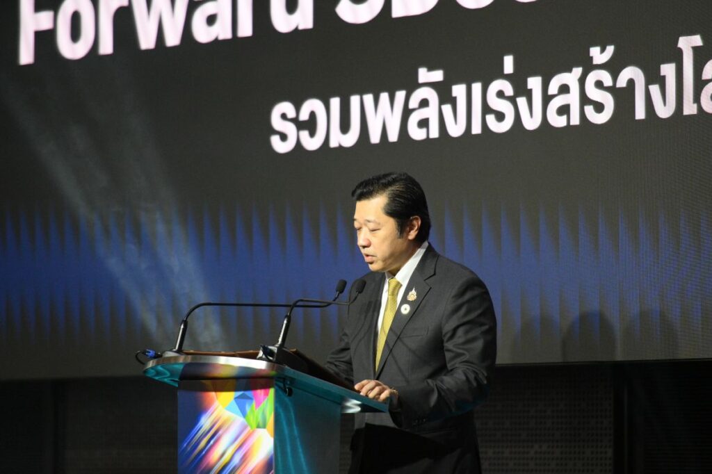 Mr. Suphachai Chearavanont, President of GCNT and CEO of Charoen Pokphand Group, reported that with only five years left to achieve the 2030 SDGs, the world has only met 18% of the goals. He warned that the world is approaching a crisis point and faces challenges such as digital transformation, increasing energy demands, and technology replacing labor. He then proposed 7 Transformations for Thailand to underscore the key drivers for future economic and social growth: