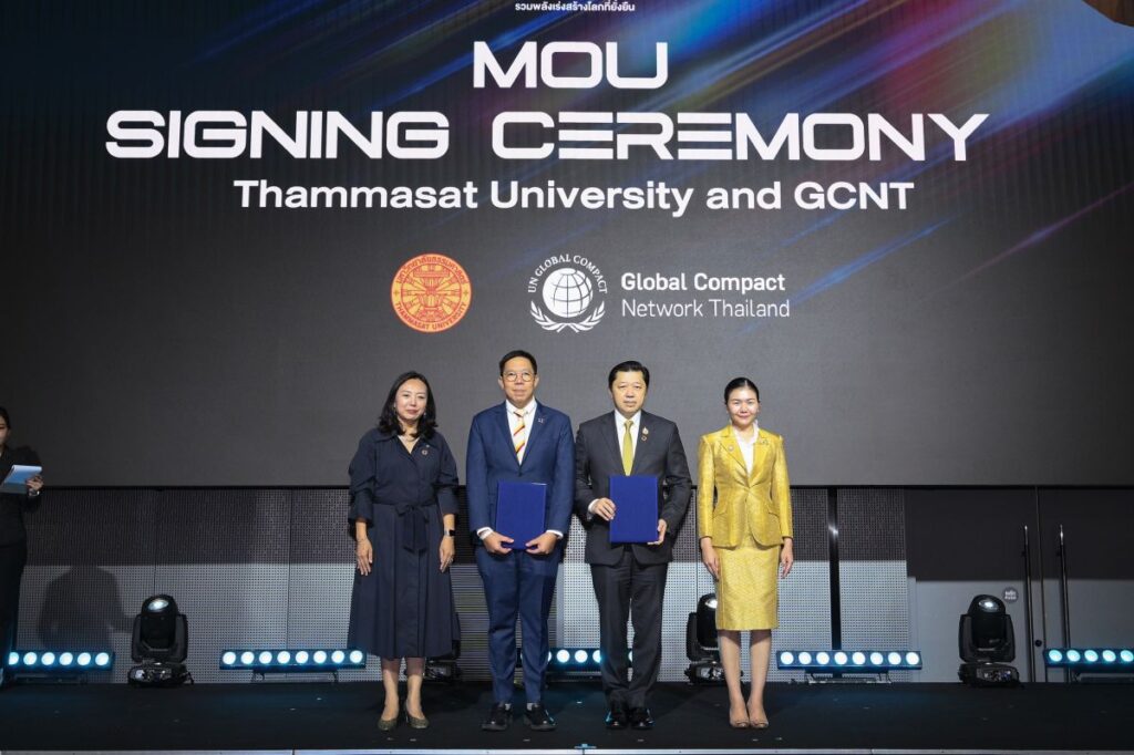 อีกหนึ่งไฮไลต์สำคัญของงาน คือพิธีลงนามบันทึกความเข้าใจ (MOU) ระหว่าง มหาวิทยาลัยธรรมศาสตร์ และ GCNT ในการจัดตั้งหลักสูตรวิทยาศาสตร์บัณฑิต สาขาวิชาการจัดการเพื่อความยั่งยืน ซึ่งสะท้อนความมุ่งมั่นร่วมกันในการขับเคลื่อนการศึกษา การวิจัย และการเรียนรู้ด้านความยั่งยืนอย่างเป็นรูปธรรม