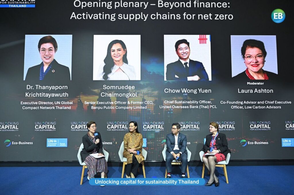 Dr. Thanyaporn Krichtitayawuth, Executive Director of UN Global Compact Network Thailand joined leaders from various sectors to discuss solutions to Thailand climate and economic challenges at the Unlocking Capital for Sustainability Thailand organized on 30 September 2025.