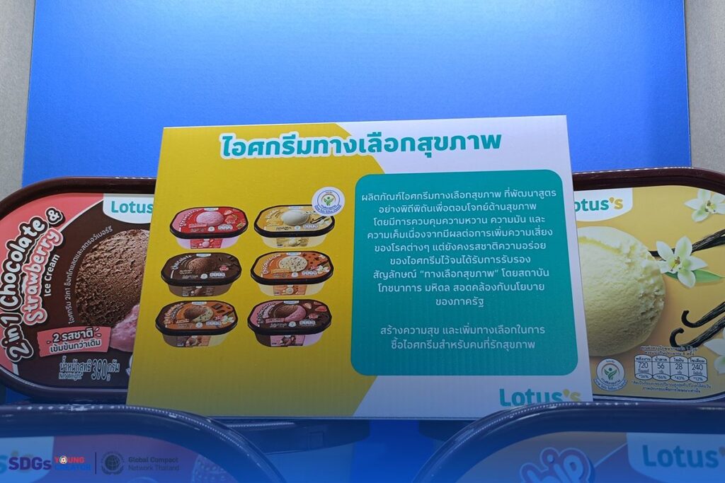 ไอศกรีมทางเลือกสุขภาพจาก Lotus’s ได้รับการพัฒนาสูตรโดยมุ่งเน้นลดปริมาณน้ำตาล ไขมัน และแคลอรี่ลง โดยยังคงรักษาความอร่อยและเนื้อสัมผัสที่คนรักไอศกรีมคุ้นเคย ทั้งยังได้รับสัญลักษณ์ “ทางเลือกสุขภาพ” จากสถาบันโภชนาการ มหาวิทยาลัยมหิดล ซึ่งเป็นการรับรองถึงคุณภาพและความปลอดภัยของผลิตภัณฑ์ นอกจากนี้ การได้รับสัญลักษณ์นี้ยังสอดคล้องกับนโยบายของภาครัฐที่สนับสนุนการบริโภคอาหารเพื่อสุขภาพ