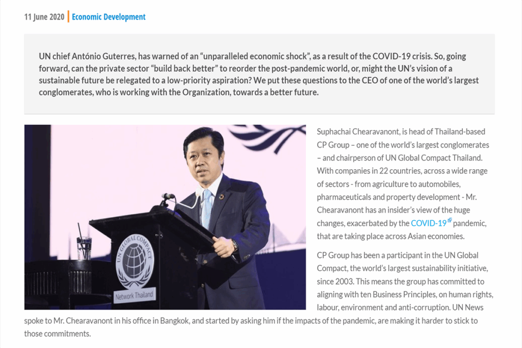 Suphachai Chearavanont, head of Thailand-based CP Group and chairperson of UN Global Compact Thailand.