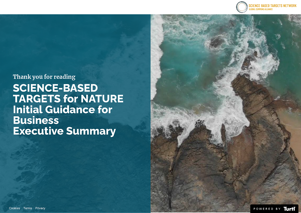 https://sciencebasedtargetsnetwork.turtl.co/story/science-based-targets-for-nature-initial-guidance-for-business/ or download SBTN Initial Guidance for Business Executive Summary
